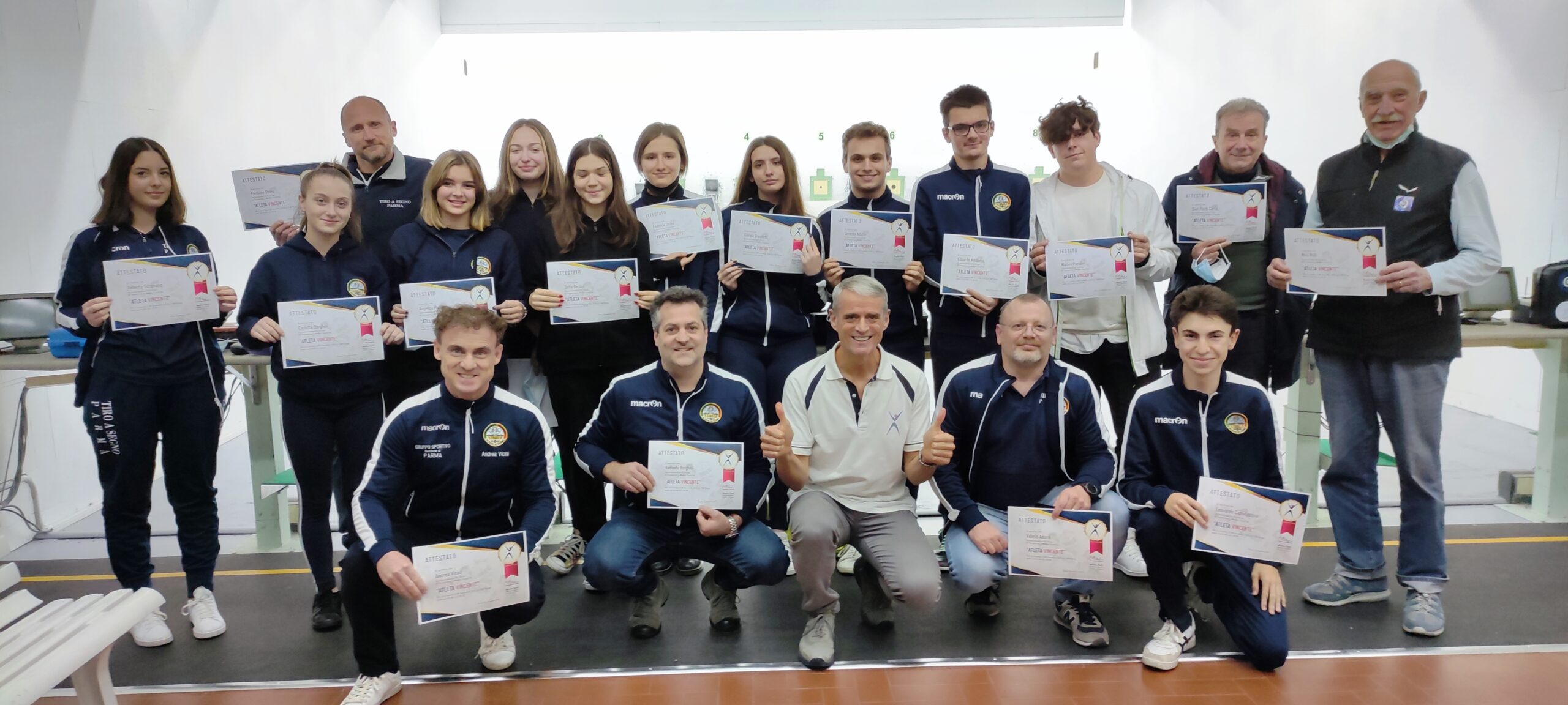 In poligono, gli atleti, sotto alla guida del Mental Coach e dei loro allenatori, hanno sperimentato la potenza di quanto imparato in aula, mettendo in atto con successo la creazione della consapevolezza, l’ancoraggio d’ambiente, l’attenzione selettiva, la concentrazione, la routine, l’ancoraggio d’azione, la routine tra due tiri e l’autovalutazione finale della propria prestazione.